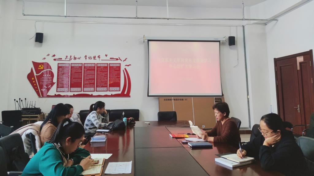 12月13日下午,beat365官网唯一党总支在崇文楼B123会议室召开beat365官网唯一党总支理论学习中心组扩大学习会,学院党总支书记刘凤琴主持会议,学院全体教师参加学习。