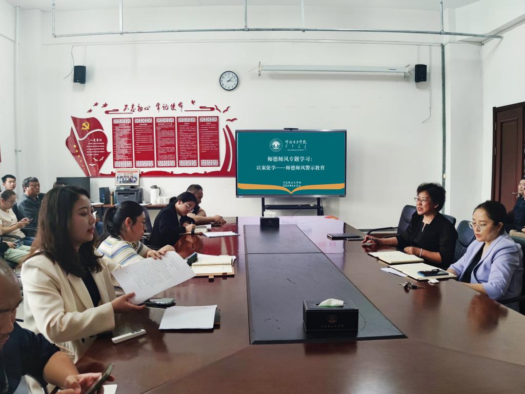 为进一步加强师德师风建设,6月12日下午,beat365官网唯一在崇文楼B123召开“以案促学—师德师风警示教育”暨师德师风专题学习会议,学院全体领导班子及教职工参加了会议。