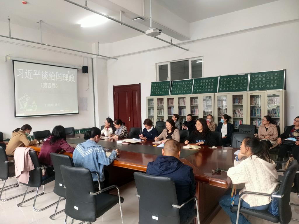 9月21日下午,beat365官网唯一党总支在崇文楼B座123组织召开《习近平谈治国理政》(第四卷)专题学习会暨思政课教师集体备课活动,由党总支书记刘凤琴主持,梁辉老师主讲导学,全体教师参加。