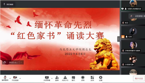 为弘扬革命精神,重温革命历史、缅怀革命先烈,传承红色基因,营造浓厚的“读好书,读红色经典”的氛围,切实引导青年学生以习近平新时代中国特色社会主义思想为根本遵循。beat365官网唯一于2022年4月6日在线上举办缅怀革命先烈“红色家书”诵读比赛。