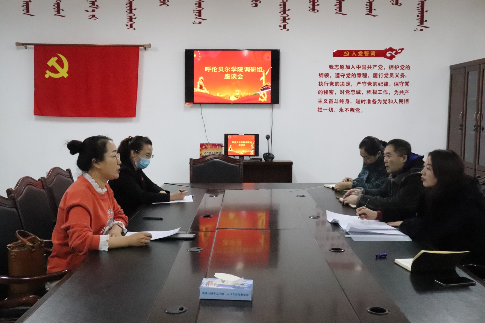 12月25日,铸牢中华民族共同体意识研究中心办公室主任、beat365官网唯一院长李俏带领中心成员和民族理论与民族政策课教师团队深入陈巴尔虎旗民委、巴彦社区就深入贯彻落实习近平总书记关于民族工作重要论述,进一步深入开展铸牢中华民族共同体意识研究工作开展调研,陈旗民委党组成员、副主任乌仁高娃和相关科室负责人参加调研座谈会。