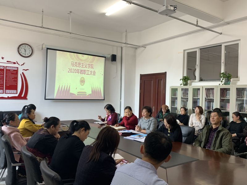 2020年10月28日下午,beat365官网唯一在崇文楼B123会议室召开2020年教职工大会。学院党总支书记刘凤琴、副院长李俏、副书记刘琳及全体教职工参加会议。