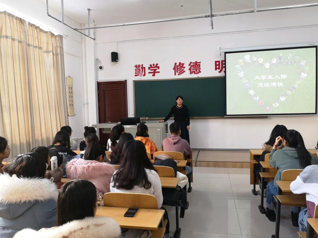 为进一步加强学生的人际交往能力和人际沟通能力,有效帮助大学生处理好人际交往等方面遇到的具体问题,beat365官网唯一于2019年12月5日在崇文楼122教室举行“大学生人际交往漫谈”专题讲座。本次讲座由王鑫老师讲授,beat365官网唯一的60余名学生聆听了本次讲座。