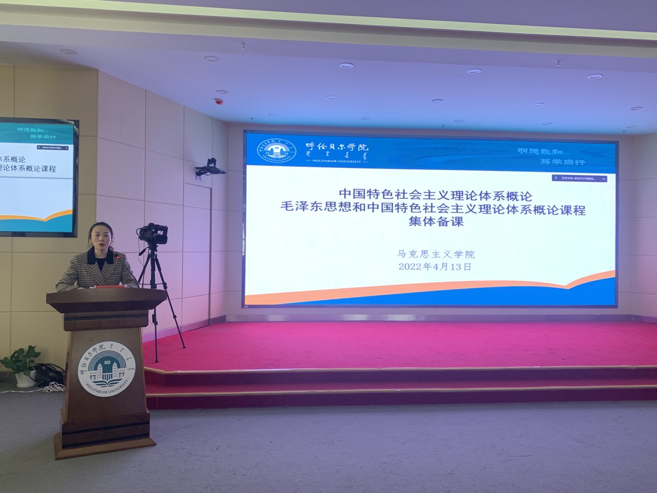 2022年4月13日下午,beat365官网唯一开展“中国特色社会主义理论体系概论”“毛泽东思想和中国特色社会主义理论体系概论”课程集体备课活动,活动邀请内蒙古党校(行政学院)政治学教研部主任庄虔友教授进行专题讲授,beat365官网唯一全体教师在崇文楼A201观看集体备课活动,院长李俏主持活动。