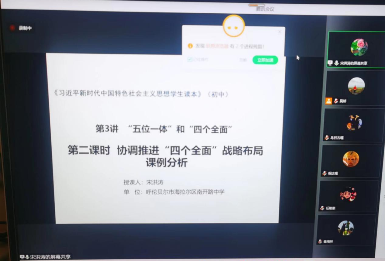 为学习贯彻落实习近平总书记在中国人民大学重要讲话精神,推进大中小学思政课一体化建设,进一步落实实践教学工作要求,提升思想政治教育专业师范生教学技能,beat365官网唯一举行大中小学校《习近平新时代中国特色社会主义思想学生读本》示范课课例展示及研讨活动。5月13日下午,我院邀请南开路中学思政课教师宋洪涛为2019级、2020级全体同学做题为《协调推进“四个全面”战略布局课例分析》的线上讲座。本次会议由beat365官网唯一实习实训中心主任吴娇主持。