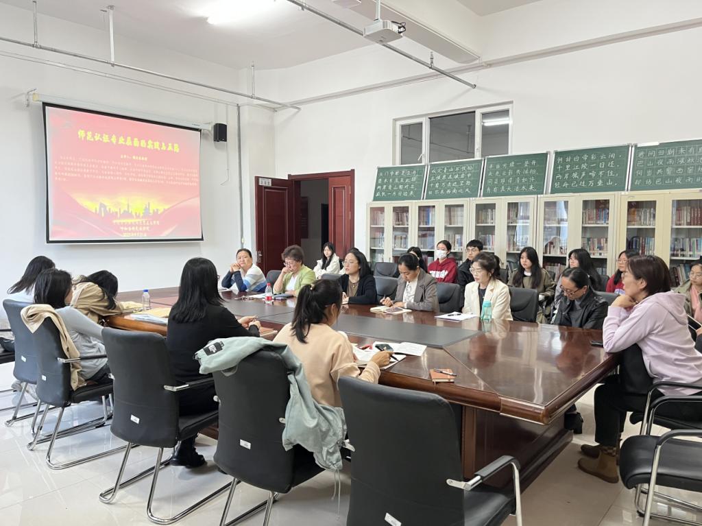 为增强我院师生对师范专业认证的了解,加深对师范专业认证工作要点的把握。9月21日下午,我院特邀河北民族师范学院魏沧波教授开展了《师范认证专业层面的实践与反思》主题讲座。本次讲座由学院院长吴秀芳主持,党总支书记刘凤琴、党总支副书记刘琳、副院长明兰、全体专业课教师及部分优秀学生代表出席,在线上共同学习的还有呼和浩特民族学院beat365官网唯一的老师。